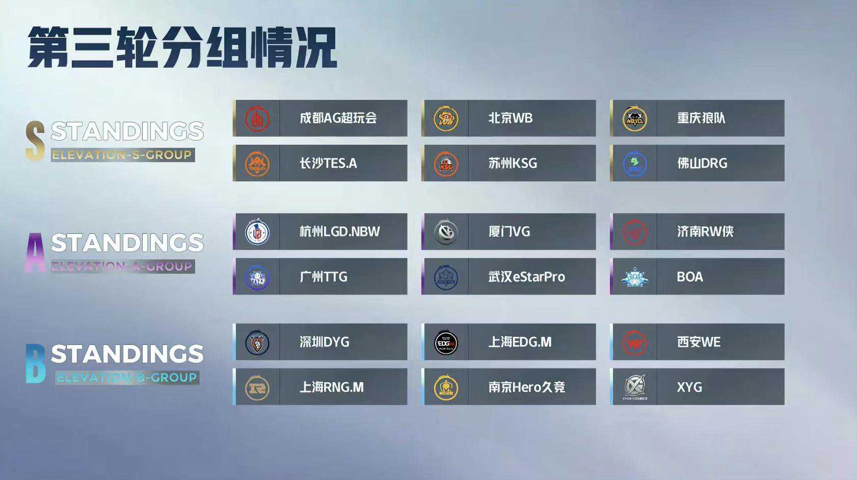 这几场卡位赛结束之后,KPL第三轮常规分组得到了“大洗牌”,S组6支战队分别是AG超玩会、狼队、WB、、KSG以及DRG战队,这6支队伍也拿到了季后赛门票。