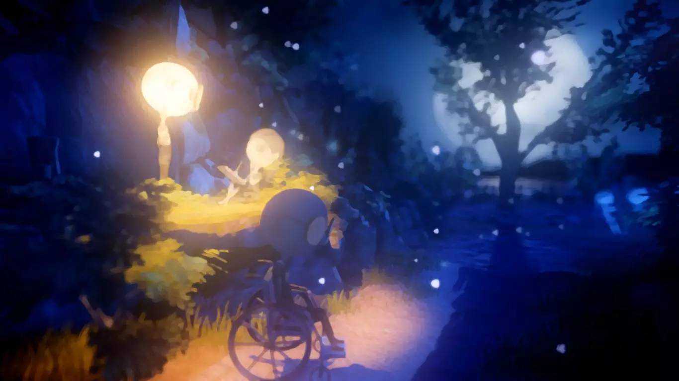 “光与影的搭配有着和谐的旋律”,《June》的画面为玩家营造的是一种温暖且朦胧的感受,小镇的安宁与闲适在美妙的色彩和光影中得到展现;当然,幻境中月光下的小镇与白日相比则又是另外一种风格,清冷的深蓝色调中所凸显而出的,则是一种迷离而又孤独的氛围。
