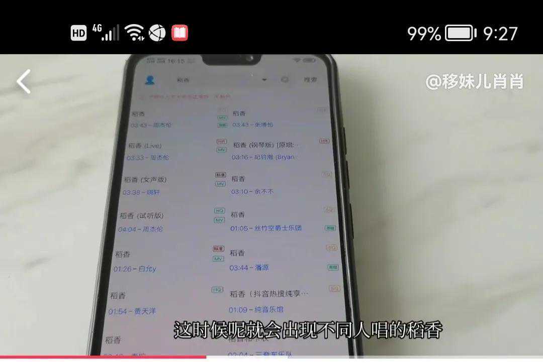 ,这时候就会出现不同人唱的稻香,我们根据自己选择,选择好了,点一下