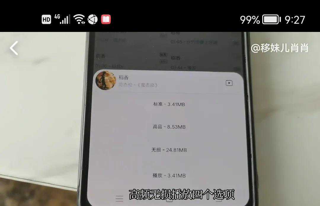 ,这里就会出现,标准,高品,无损,播放,4个选项,高品音质要比标准音质好,但占内存也大,一般的手机播放差距不太能听出来,我们选择标准,高品都可以,点一下高品,它就迅速的下载,不仅下载速度快,还不用花钱,这样就下载完成了