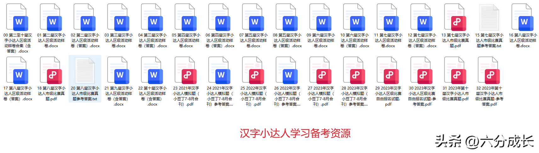 简介距离2024年第11届汉字小达人比赛还有七个多月的时间,如何利用这段时间有条不紊地备考呢?我的建议是两手准备:①把小学1-5年级的语文课本上的知识点熟悉,重点是字、词、成语、古诗。阅读理解不需要。②把历年真题刷刷熟,这对了解汉字小达人比赛,以及巩固语文综合知识很有用。汉字小达人历年选择题真题练一练第...
