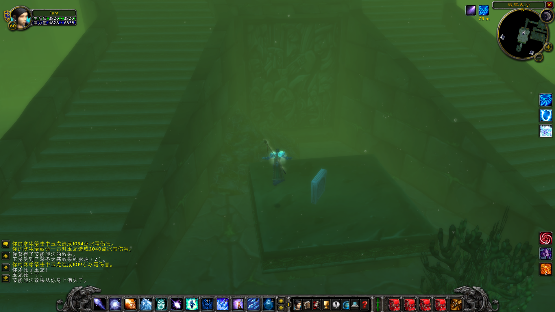 下楼回到副本门口,向最后的区域进发。这里被绿龙军团占领,小心清理掉几组怪物后,进入神庙面积最大的大厅。这里可以任意选择先去东翼或是西翼。