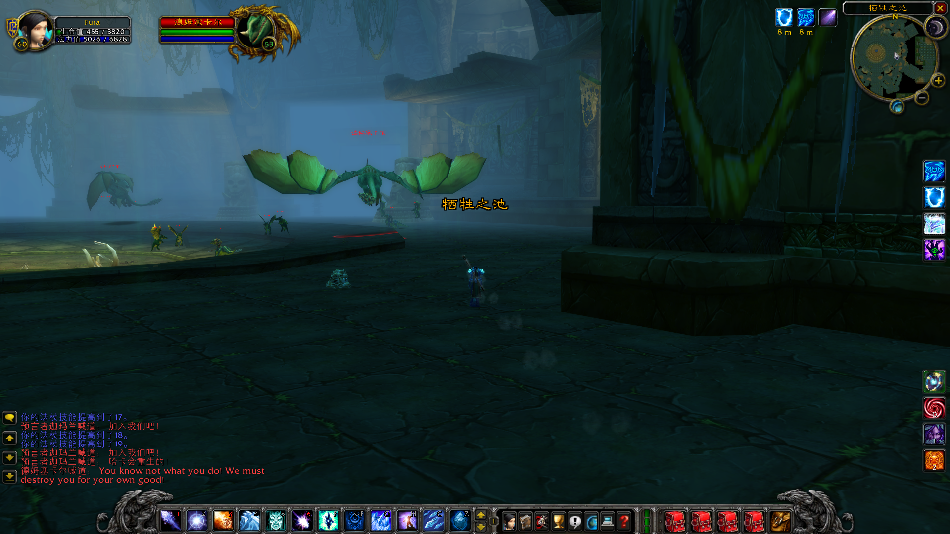 最后面对预言者迦玛兰和他的跟班可悲的奥戈姆。小跟班是个亡灵怪物会暗影攻击,血很少,可以优先击杀,也可以束缚后先杀BOSS。