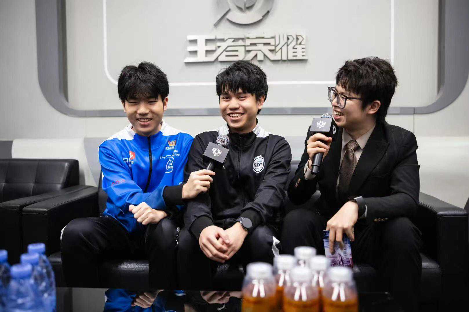 在比赛获胜之后,eStarPro的打野花海和中路清融接受了采访,看得出来两人都是非常高兴的。