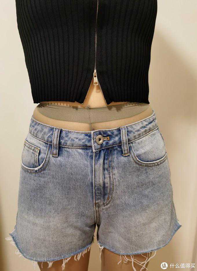 它搭配黑色的连衣裙、皮裙、牛仔短裤都还挺好看,它是T裆的设计,楼主52kg,虽然不是很胖,但是穿着时大腿处还是稍微有点紧,所以这款不太建议胖mm入。