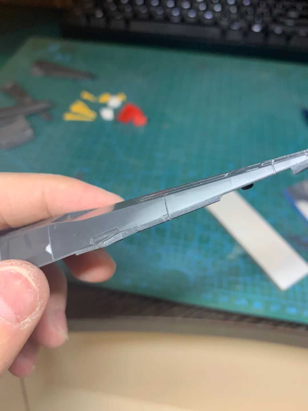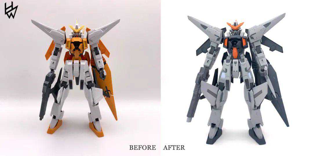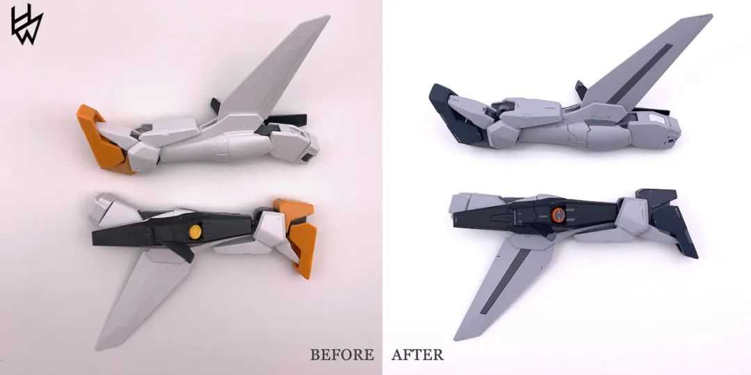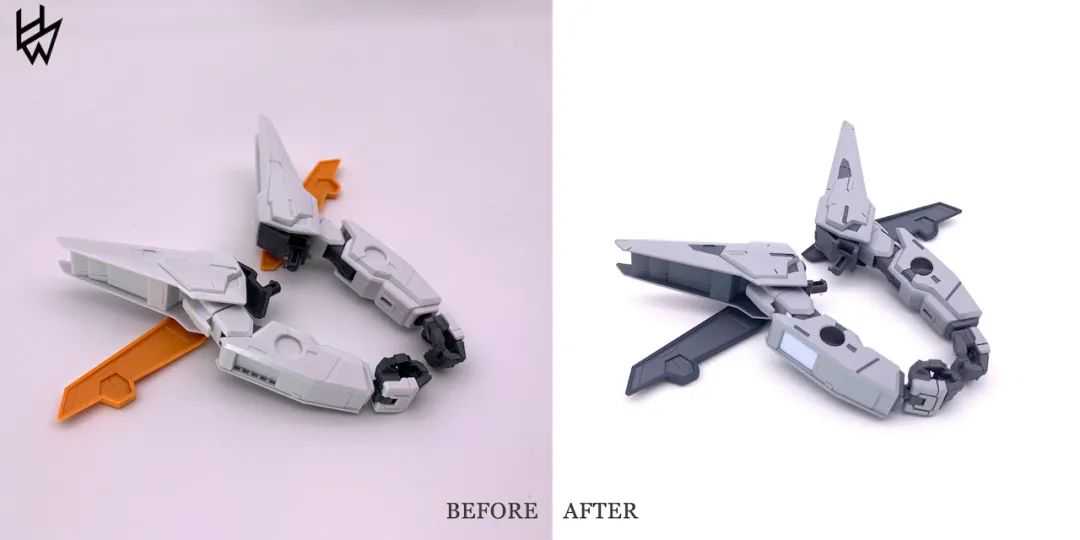 然后接下来是制作部分,因为这款比TV力天使外观上的拼接缝就相对较多,而且老TV的零件大开大合的粗暴开模也很多,所以看似简单的制作也有不少地方还挺繁琐的,不过就当是巩固自己的基本功吧。在制作的时候有做一些影响大感官的地方的无缝处理,不过为了能让别人很快看出来其实不是MG(其实就是自己是个懒狗),所以也没有处理的很全面。锐化了一些比较肉的边缘,处理了分模线等等。虽然遗憾的地方也有,不过作为个自己摸鱼的作品来讲,制作了的部分用心了自己还是知足了。