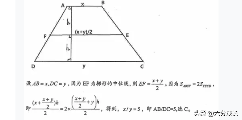 这道题的考点是平面几何,梯形的性质。答案选C,根据题意画出图形,解析过程如下:
